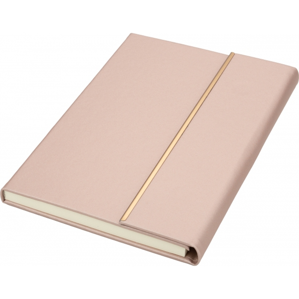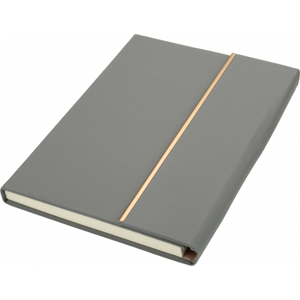 Zestaw, składający się z notesu z 96 kartkami w linie, w oprawie ze skóry pochodzącej z recyklingu i dopasowanego kolorystycznie długopisu.