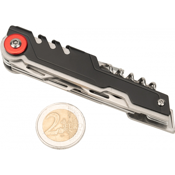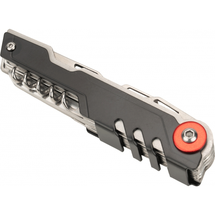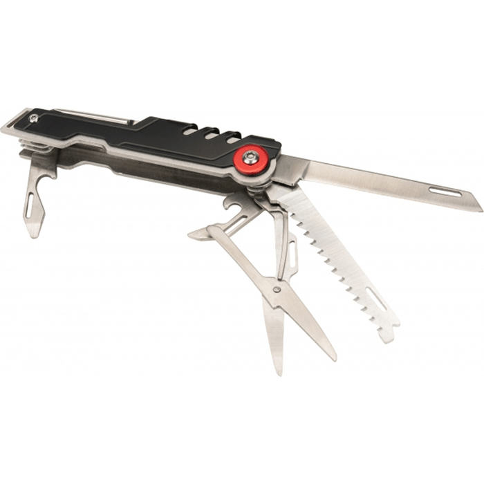 Narzędzie wielofunkcyjne marki Schwarzwolf z 12 przyborami. Wykonane ze stali S/S 2CR13.