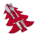 Filcowe kieszonki na sztućce w kształcie choinki, wykonane z RPET. 4 sztuki w komplecie. Artykuł sezonowy (nie podlega zwrotowi).
