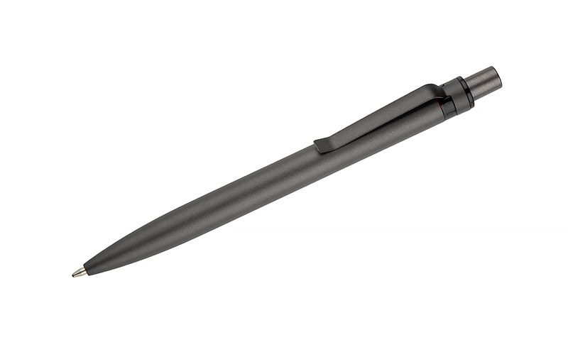 Długopis RAL wykonany jest z recyklingowanego aluminium w eleganckim, grafitowym kolorze z chromowanym wykończeniem. Aluminiowy klips zakończony kolorowym akcentem nadaje mu nowoczesny i rozpoznawalny wygląd. Mechanizm wysuwu jest automatyczny, co zapewnia wygodę i szybkie użycie w każdej sytuacji. Smukła forma oraz przyjemny w dotyku korpus gwarantują komfort pisania. Wkład typu G2 o grubości linii 1,0 mm zapewnia płynny i precyzyjny zapis. To praktyczny gadżet reklamowy, który świetnie sprawdzi się w biurze i podczas spotkań biznesowych.