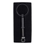 Brelok w kształcie amortyzatora. Wykonany z metalu w kolorze czarnym z widoczną, sprężynową konstrukcją. Pakowany w czarne opakowanie upominkowe.