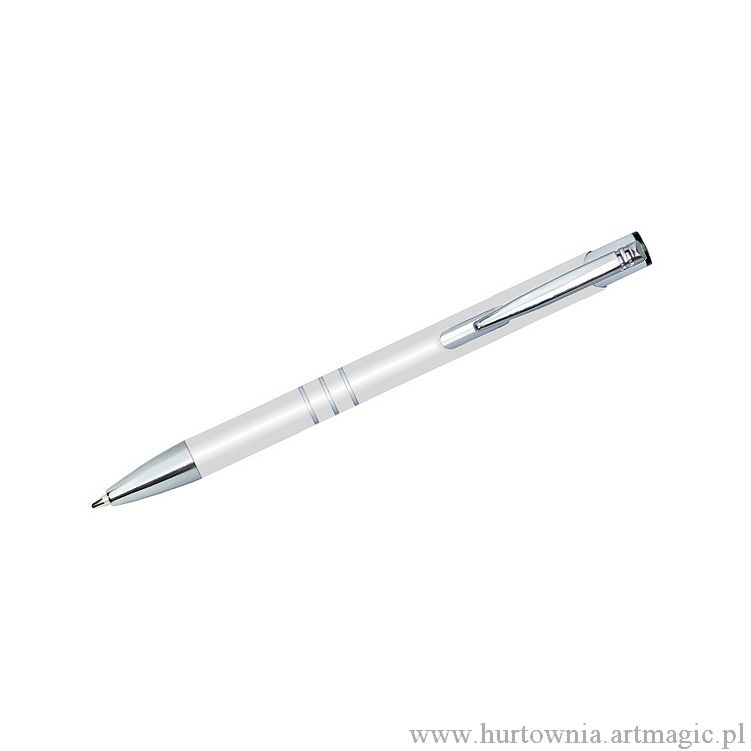 Najbardziej popularny metalowy długopis w Polsce, teraz w trzech paskach. Posiada gruby wkład w kolorze niebieskim. Państwa logo umieścimy na korpusie metodą graweru laserowego.