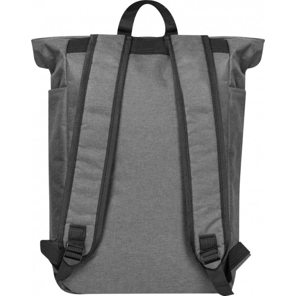 Wytrzymały plecak kurierski, wykonany z solidnego poliestru, idealnie sprawdzi się w trudnych warunkach miejskich. Posiada rolowane zamknięcie, które zapewnia dodatkową ochronę przed wilgocią i ułatwia dostosowanie pojemności plecaka do aktualnych potrzeb. Wewnętrzna wodoodporna wyściółka gwarantuje, że przewożone przedmioty są chronione przed deszczem. Plecak został wyposażony w dwie boczne przegrody na napoje, co zwiększa jego funkcjonalność. Solidne, zabezpieczone szwy oraz klamra zamykająca z regulacją zapewniają trwałość i wygodę użytkowania. Jego dodatkowym atutem jest duża przestrzeń znakowania, co umożliwia wykonanie nadruków z logo lub bardziej skomplikowanych projektów na powierzchni plecaka.