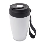 Szczelny kubek próżniowy z praktyczną pokrywką. Za pomocą przycisku, zamknięcie odskakuje na bok umożliwiając swobodne picie z kubka. Dwie ścianki ze stali nierdzewnej 18/8 o podwyższonej jakości. Próżnia pomiędzy ściankami zapewnia bardzo dobre właściwości termoizolacyjne. Utrzymuje temperaturę powyżej 40°C do 8 godzin.