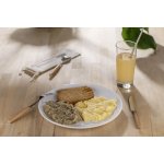 Zestaw sztućców ZOIA to praktyczny komplet idealny do posiłków w pracy, w podróży lub na pikniku. W skład zestawu wchodzą widelec, nóż, łyżka, metalowa słomka oraz czyścik do słomki. Całość zapakowana jest w woreczek, który ułatwia przechowywanie i transport. Rękojeści wykonane z drewna bukowego w połączeniu ze stalą nadają sztućcom naturalny i nowoczesny wygląd. ZOIA to funkcjonalny gadżet reklamowy z możliwością znakowania.