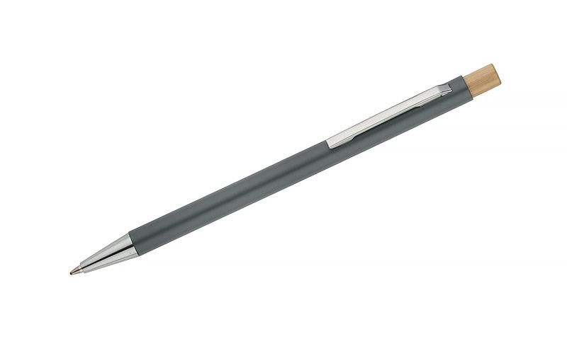 Długopis KIVO to smukły i lekki model o satynowym wykończeniu, który zapewnia wyjątkowy komfort pisania. Subtelny bambusowy przycisk stanowi naturalny akcent, podkreślający nowoczesny charakter długopisu. Mechanizm automatyczny umożliwia wygodne wysuwanie wkładu typu X20 o grubości pisania 1,0 mm, gwarantującego miękki i równy zapis. KIVO to elegancki i funkcjonalny gadżet reklamowy, idealny do codziennego użytku w biurze czy podczas spotkań.