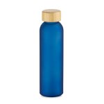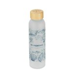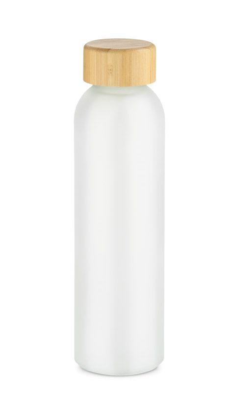 Butelka NILLO o pojemności 500 ml została wykonana z matowego szkła pochodzącego z recyklingu. Jej półprzezroczysta powierzchnia i bambusowa zakrętka nadają całości nowoczesny, stonowany wygląd. Klasyczna, gwintowana zakrętka zapewnia szczelne zamknięcie, a prosta forma sprawia, że butelka jest wygodna w codziennym użytkowaniu. Doskonale sprawdzi się do przechowywania wody, soków lub naparów. To elegancki gadżet wielokrotnego użytku z możliwością znakowania.