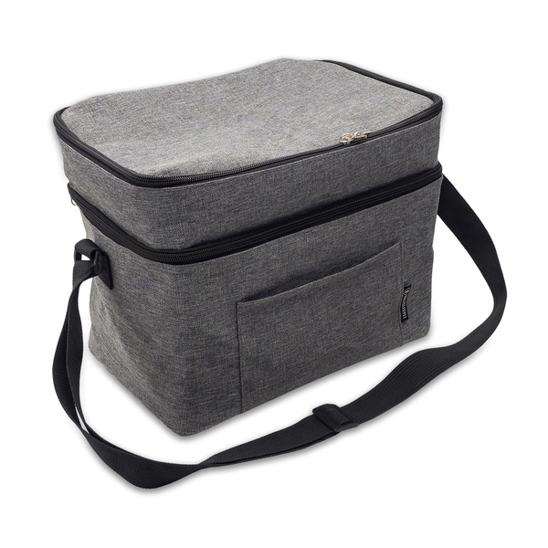 Torba termoizolacyjna wykonana z materiału RPET z dwiema komorami zamykanymi na zamek. Wewnątrz materiał PEVA, który zapewnia utrzymanie żywności i napojów w stałej temperaturze. Torba wyposażona jest w regulowany pasek na ramię i boczną zewnętrzną kieszonkę.