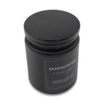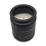 Świeca woskowa na bazie roślinnej, o zapachu drzewa sandałowego. Zamknięta w szklanym czarnym pojemniku z drewnianym wieczkiem. Całość zapakowana w eleganckie pudełko prezentowe. Czas palenia około 40 godzin. Waga wosku: 210 g.